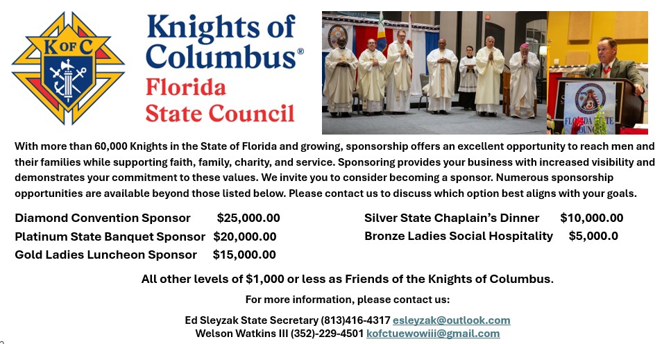 Donations directly support humanitarian assistance and other Knights of Columbus Florida State Council charitable causes. It is never too late to join our efforts.